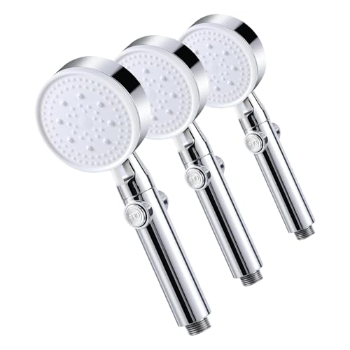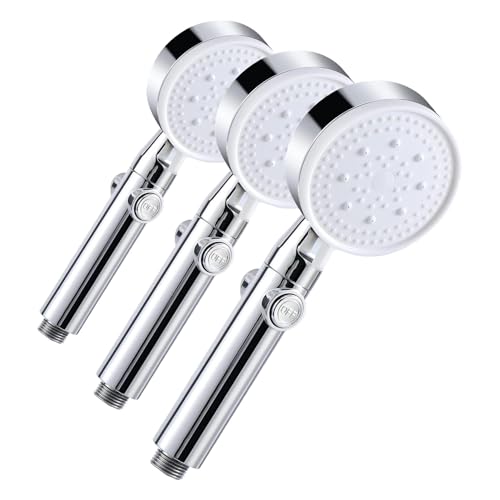 Vinabo Pommeau de Douche Haute Pression, Pommeau de Douche Économie d'eau 5 Modes Réglable, Poire de Douche Salle de Bain avec Arret, Pomme de Douche Haute Pression (Lot de 3)