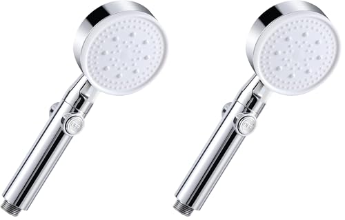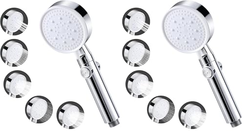 Vinabo Pommeau de Douche Haute Pression, Pommeau de Douche Économie d'eau 5 Modes Réglable, Poire de Douche Salle de Bain avec Arret, Pomme de Douche Haute Pression (Lot de 2)