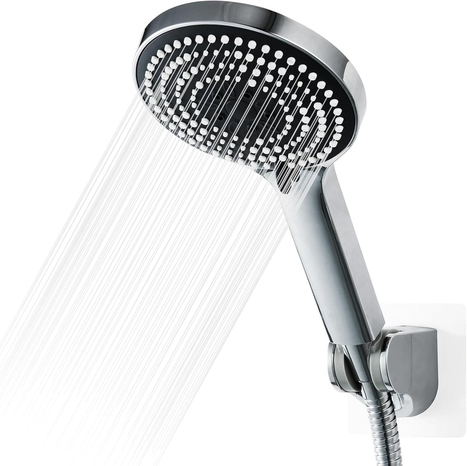 TZF-Pommeau de Douche avec tuyau et support,1.6m Flexible de douche avec pommeau,avec 6 modes de massage pulvérisation,Poire de Douche avec flexible à économie d'eau,Pomme de Douche Flexible,Chrome