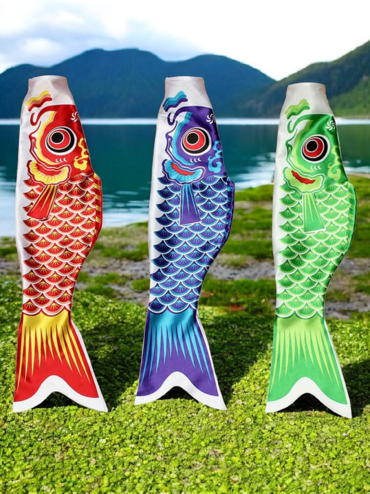 Japonaise Carpe 3 Pièce 100cm Jeu Du Vent Poison Drapeau Vert Rouge Rose Bleu