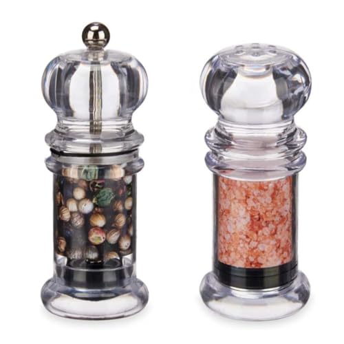 Grunwerg Moulin à Poivre et à Sel de Table en Acrylique avec rectifieuse en céramique, 2-en-1 Salière et Poivrière
