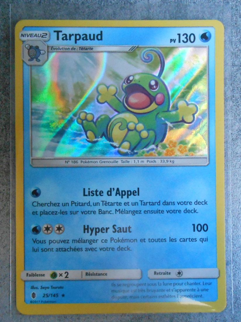 Carte Pokémon Tarpaud Holo - 130 Pv - Soleil Et Lune Gardiens Ascendants 25/145 Neuve - Fr