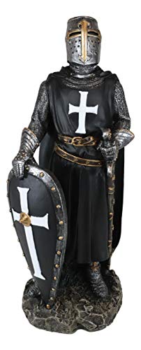 Ebros Gift Holy Wars English Black Cloaked Crusader Knight of The Cross with Sword and Shield Statue 11" Tall Suit of Armor Warrior Swordsman Templar Knights Sculpture