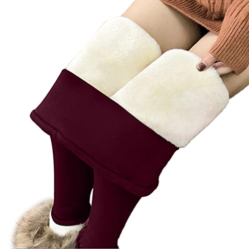 Osheoiso Femme Legging Doublé en Polaire Chaud Vintage Collants Leggings Épais en Laine Thermique Hiver Doublure Velours Leggings Pantalon Élastiques Taille Haute A Vin Rouge XL