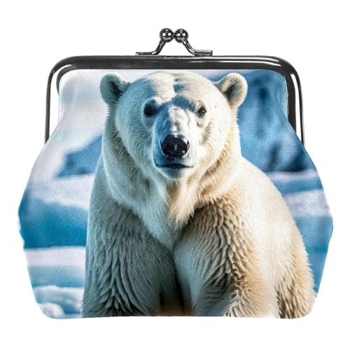 Neige Hiver Animal Ours Polaire Porte-Monnaie Vintage Pochette Boucle Pochette Kiss-Lock Changement Sac à Main Fermoir Fermeture Portefeuilles pour Femme Fille