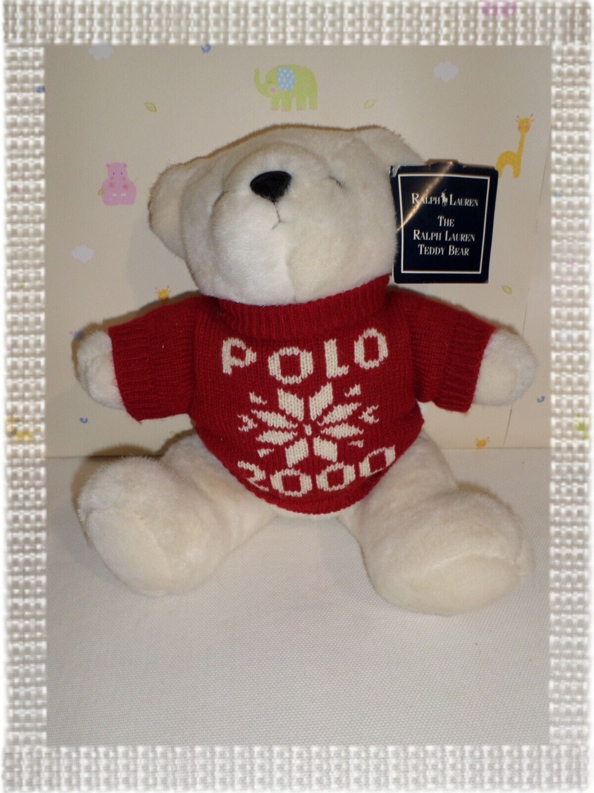 ⑲ - Peluche Ours Polaire Blanc Pull Rouge Etoile Polo 2000 Ralph Lauren 30 cm
