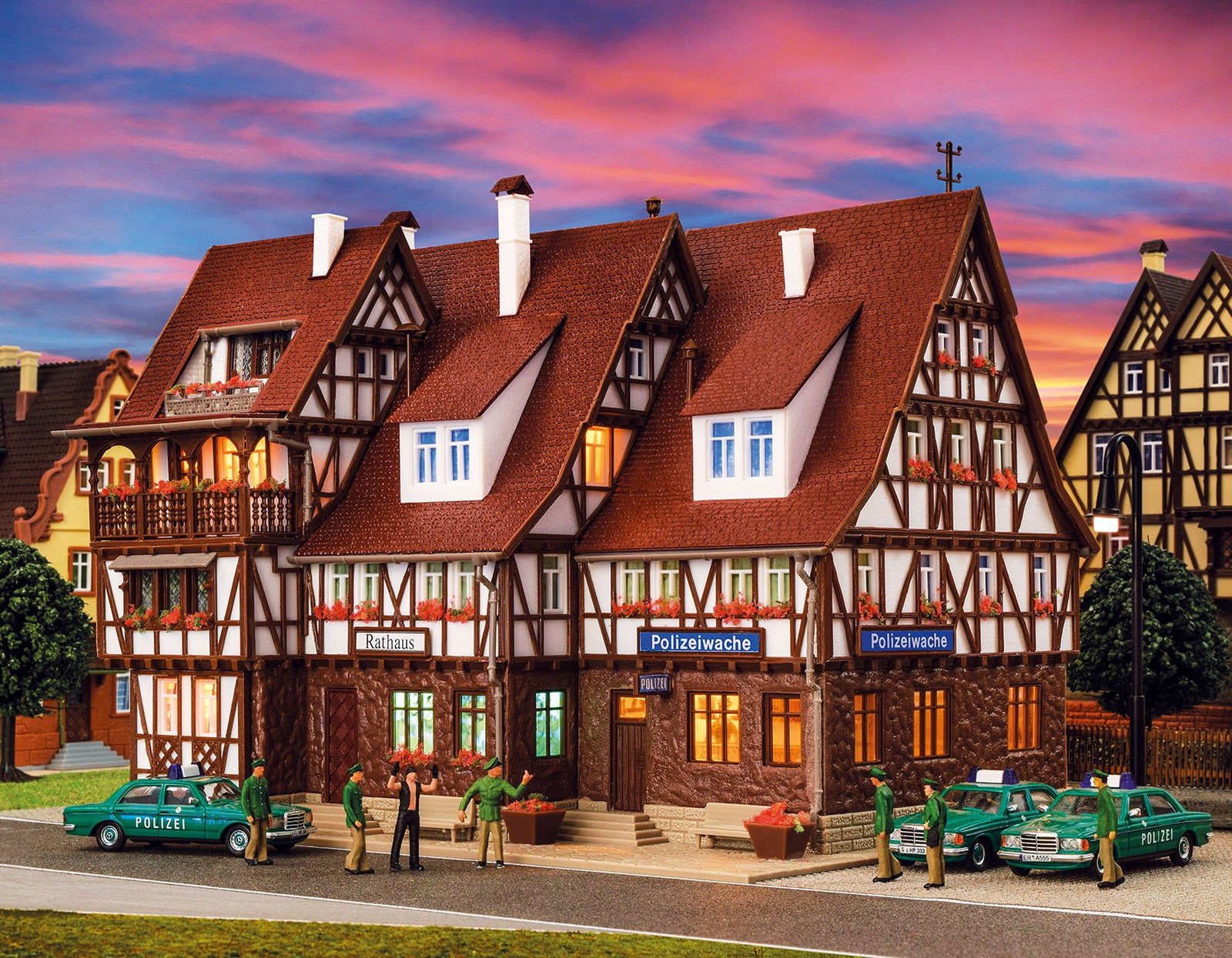 Vollmer 43693 - H0 Hôtel, Poste de Police Et Prison Avec Intérieur Moyens Un