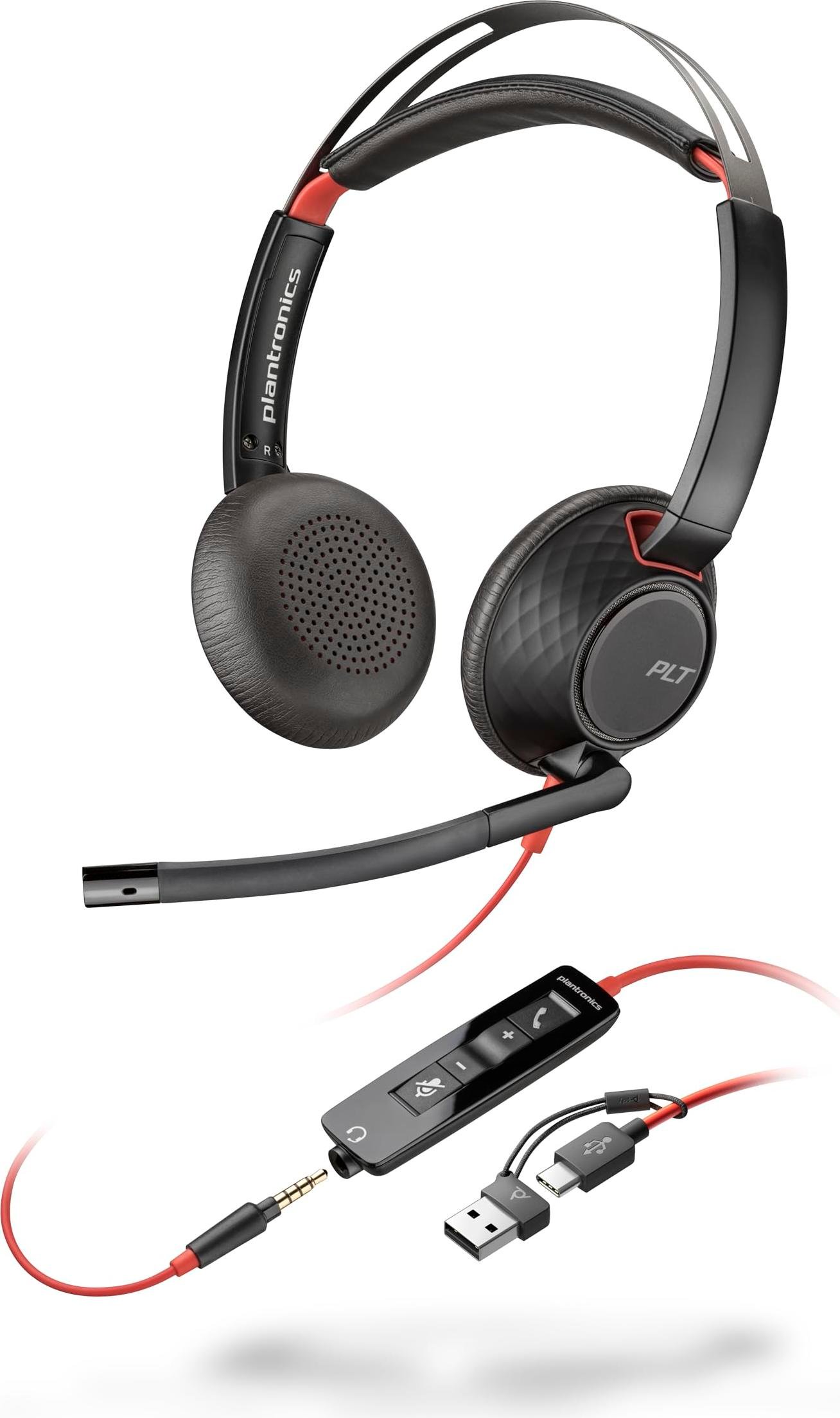 HP POLY Blackwire 5220 Stereo USB-C Headset +3.5mm Plug +USB-C/A Adapter