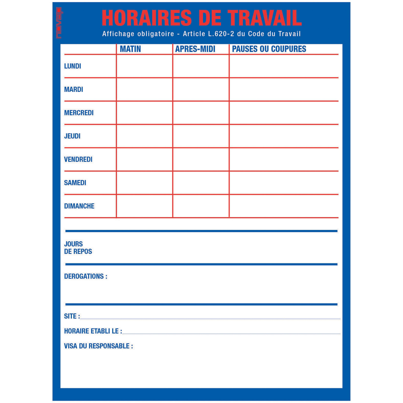Panneau horaires de travail 40 x 30 cm polystyrène choc