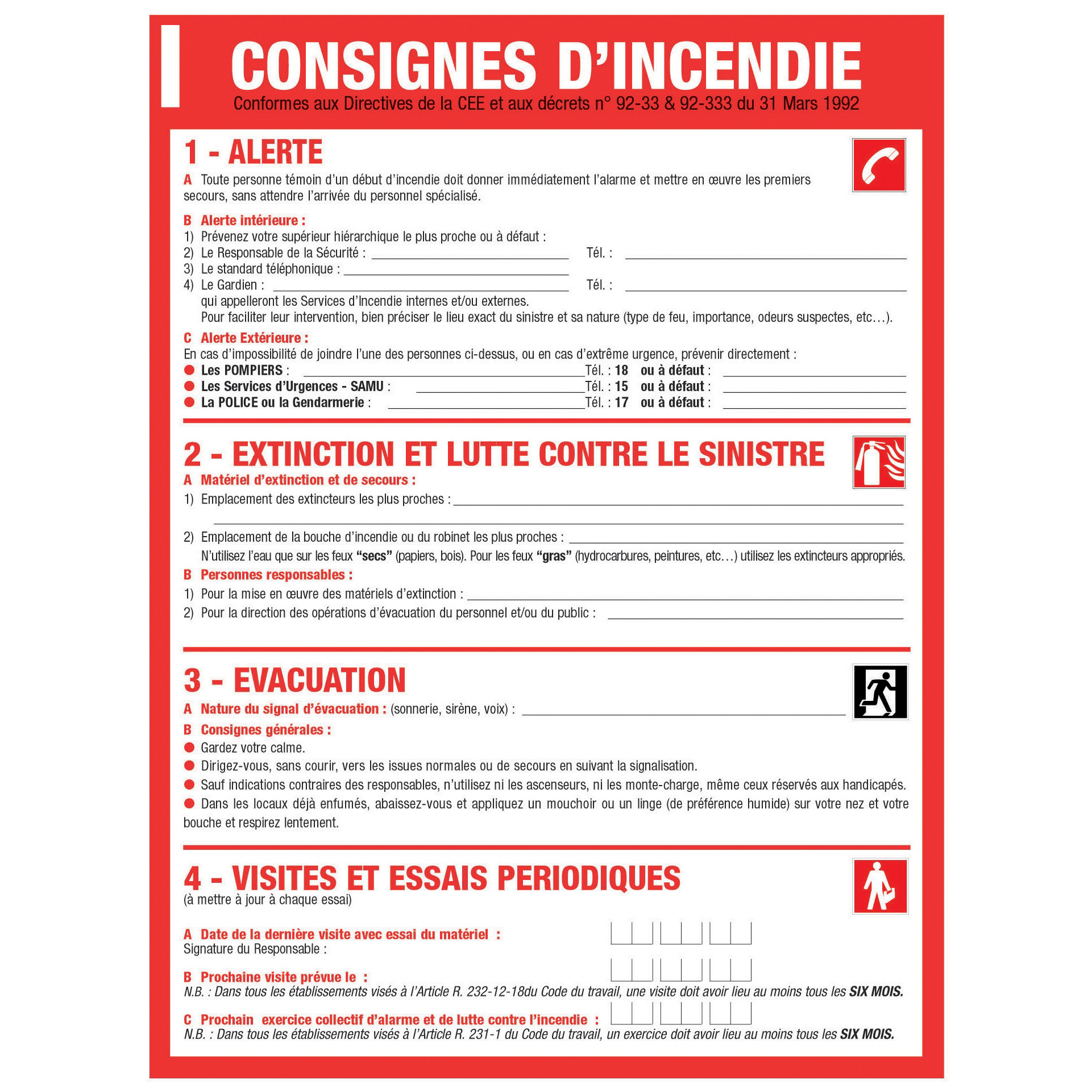 Panneau consignes d'incendie 40 x 30 cm polystyrène choc