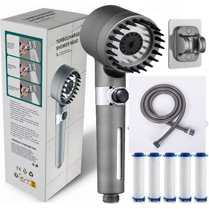 Pommeau de douche - PAS DE MARQUE - Trois modes (haute pression mixte jet) - 5 filtres - Flexible 150 cm - Économie deau