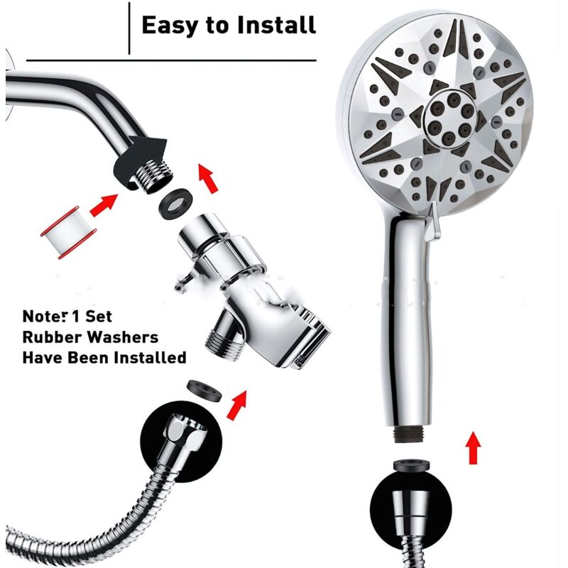 Pommeau de Douche Economie Deau, Anti Calcaire, 3 Modes Différents, Haute Pression, Filtration, Convient à I'utilisation Avec de l'eau Dure, Billes