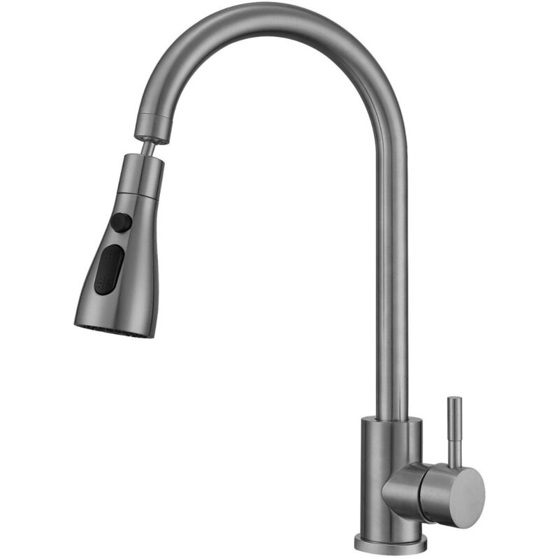 Robinet de cuisine incurvé anti-éclaboussures, rallonge à roulement à billes en acier inoxydable 304, pommeau de douche extractible, Gris