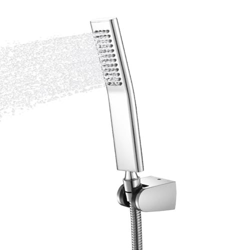 SWHC Pommeau de Douche Economie Deau Pression, Douchette Universelle Interface 1/2 Pouce, Douche à Main Monojet Facile à Installer et à Nettoyer, Anti-Calcaire, avec Support & Flexible 1.5 m