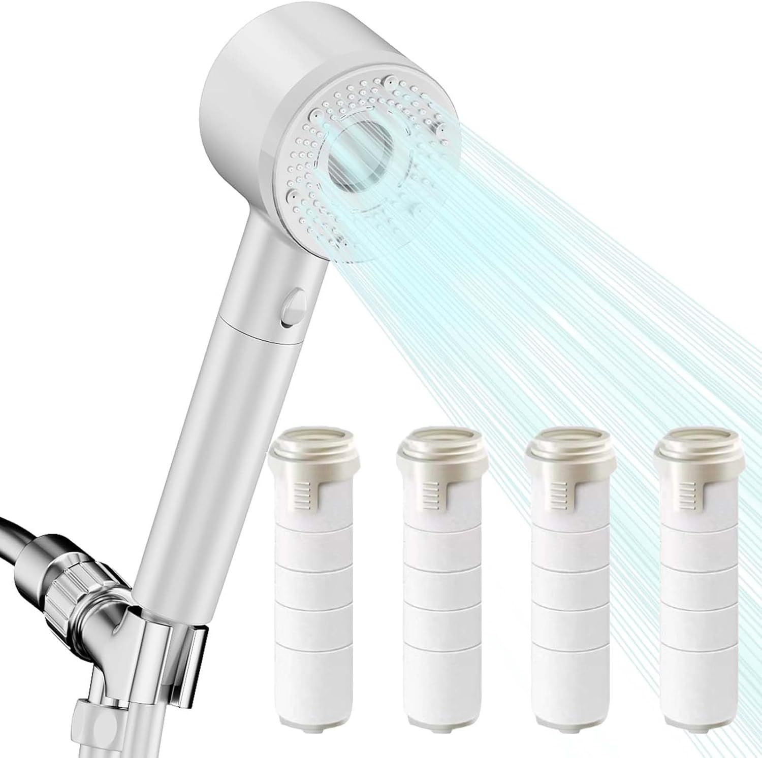 TNSRAY Pommeau de Douche Economie d'eau, Pommeau de Douche, Pommeau Douche Anti Calcaire, Anti Calcaire Douchette avec Filtre, Haute Pression Pomme avec 4 Modes de Jet, Spa Pomme de Douche