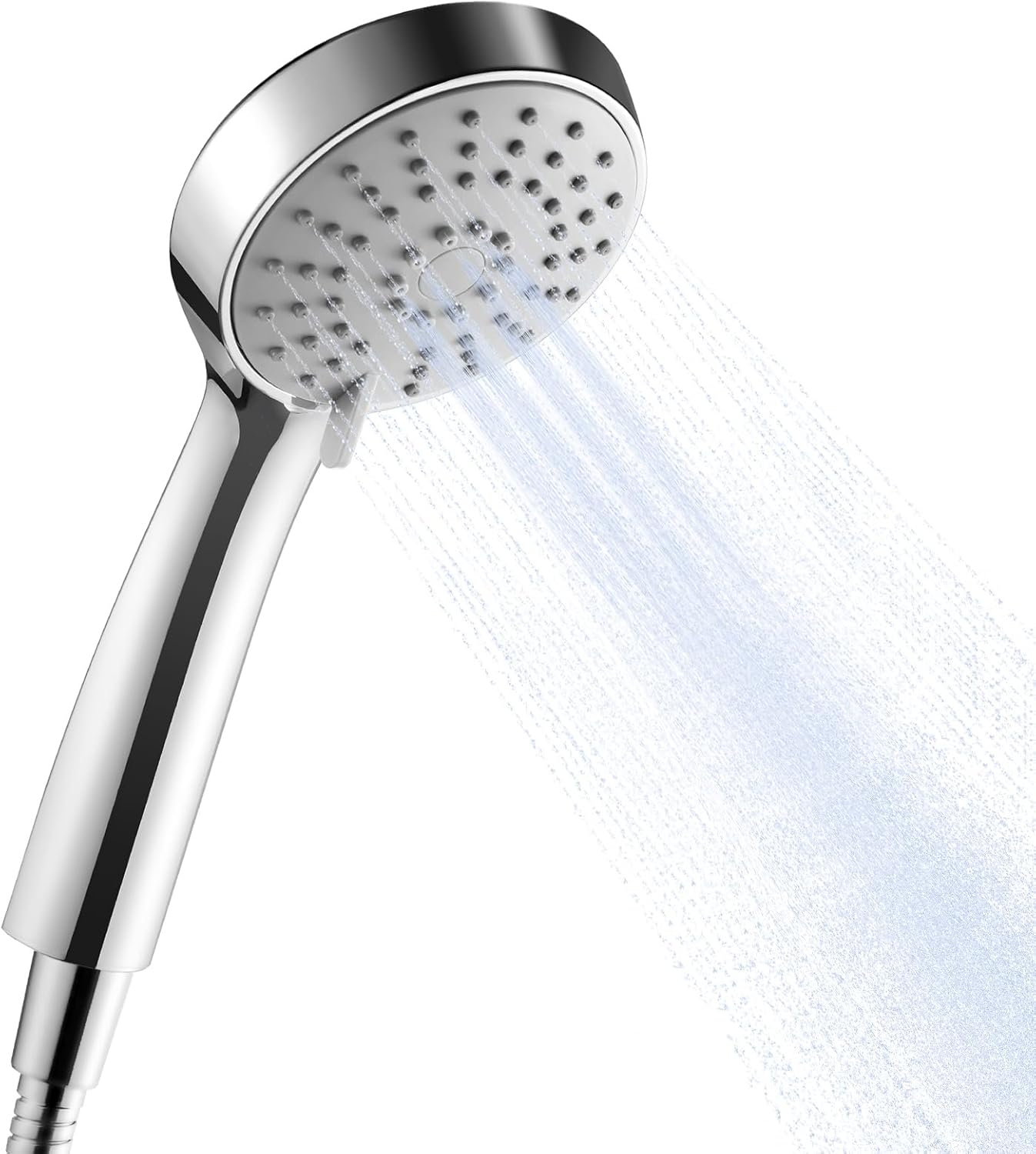 JGD-Pommeau de Douche avec Tuyau de 1,6m, Pomme de Douche à Main à 3 Modes, Pomme Douche Ronde, Pommeau de Douche Economie deau, Douchette avec Flexible pour Salle de Bain, Chrome