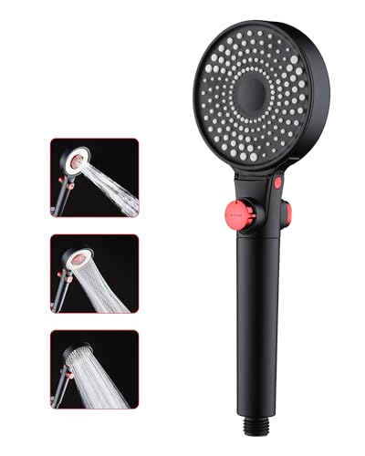JGD-Pommeau de Douche, Pomme de Douche à Main à 3 Modes, Pomme Douche Ronde, Pommeau de Douche Economie deau, Douchette pour Salle de Bain, Noir