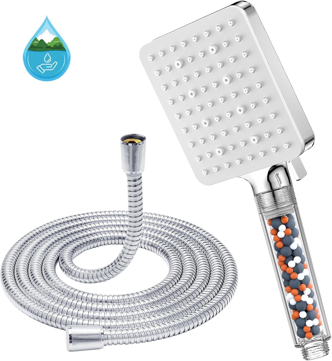 Pommeau de Douche avec Tuyau 1.6m, Pommeau de Douche Economie eau avec 6 Modes, Pommeau de Douche Carré Filtrant, Douchette Douche Salle de Bain Haute Pression Anti Calcaire, Blanc