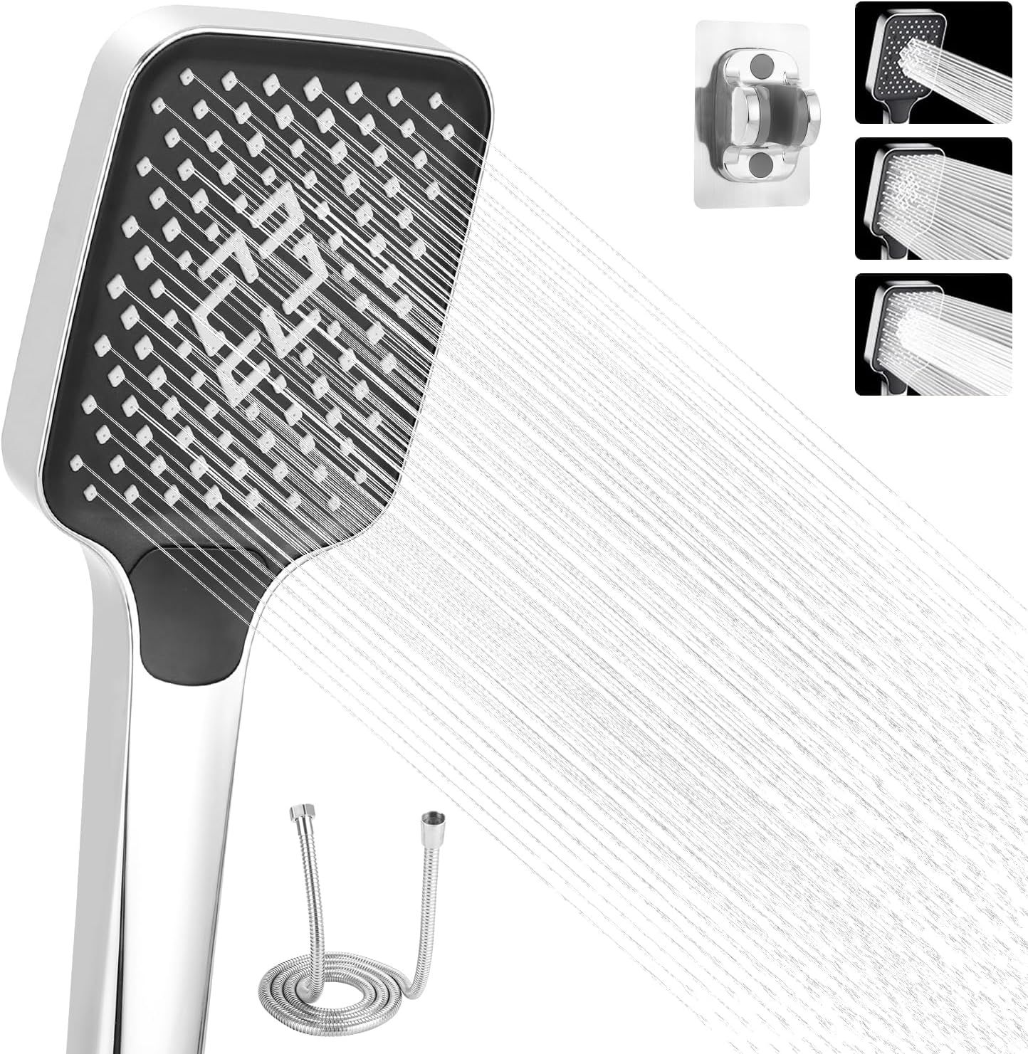 Pommeau de Douche, Pommeau de Douche Haute Pression, Douchette Douche Salle de Bain, Douches à Main, Pommeau de Douche Carré, Pommeau de Douche Economie Deau, 3 Modes de Jet, Argent