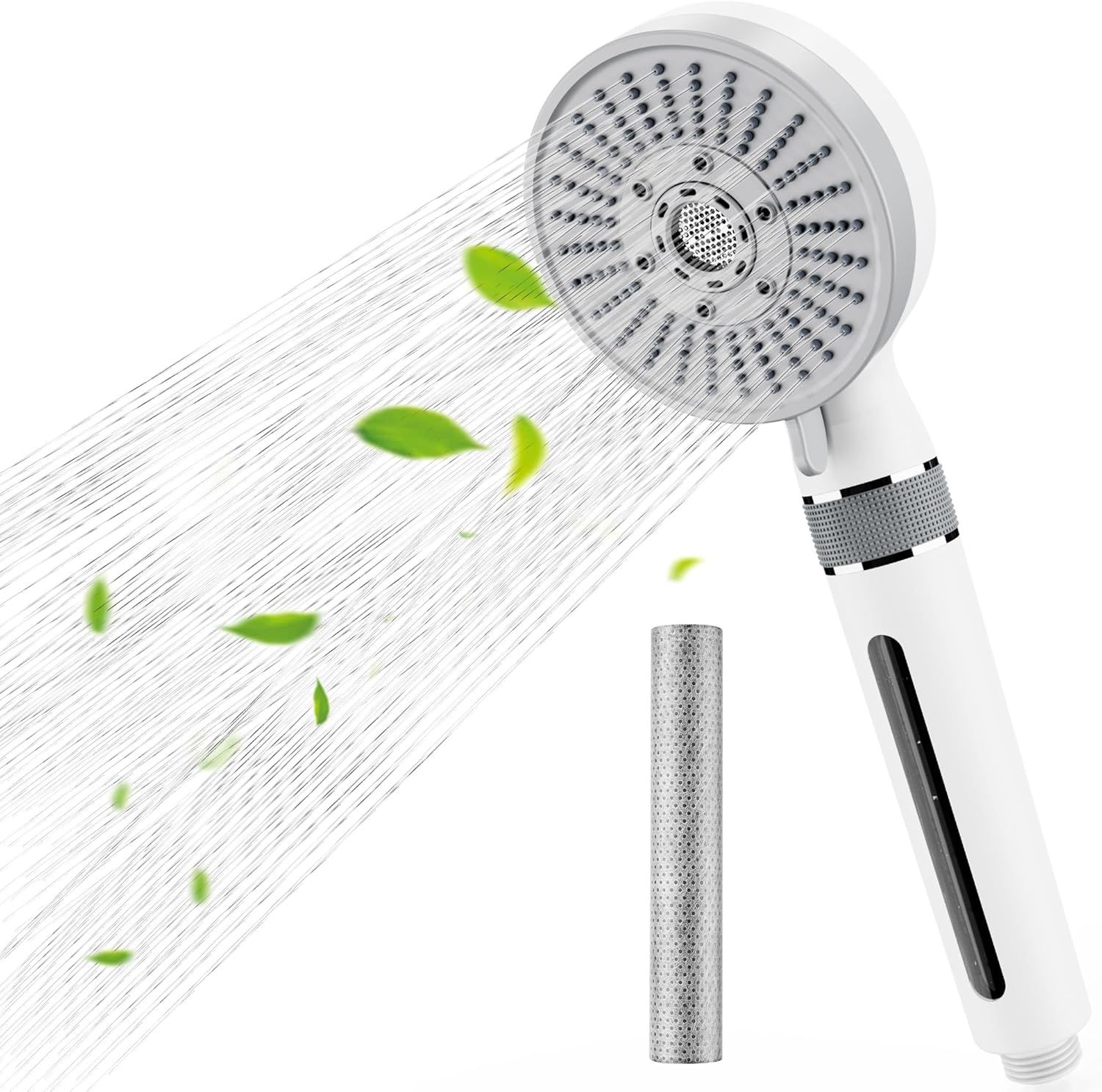 KALANKA-Chrome Pommeau de Douche Economie Deau, Filtre Coton PP Remplaçable Pommeau Douche Anti Calcaire, 5 Modes de Jet Pommes de Douche et Douches à Main, Filtre Douche, Shower Head (Blanc)