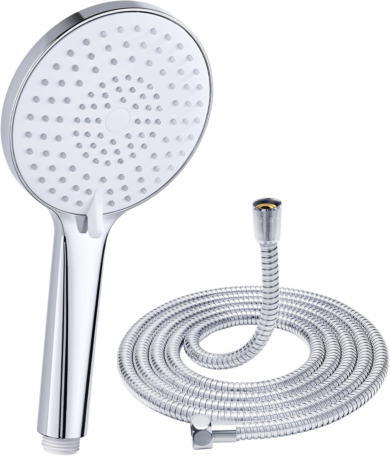 Pommeau de douche avec tuyau de 1,6M, Pommeau De Douche Haute Pression Avec 3 Types de Jets, Pommeau De Douche Anti Calcaire (¿120 MM), Pommeau De Douche Economie Deau, Chromé