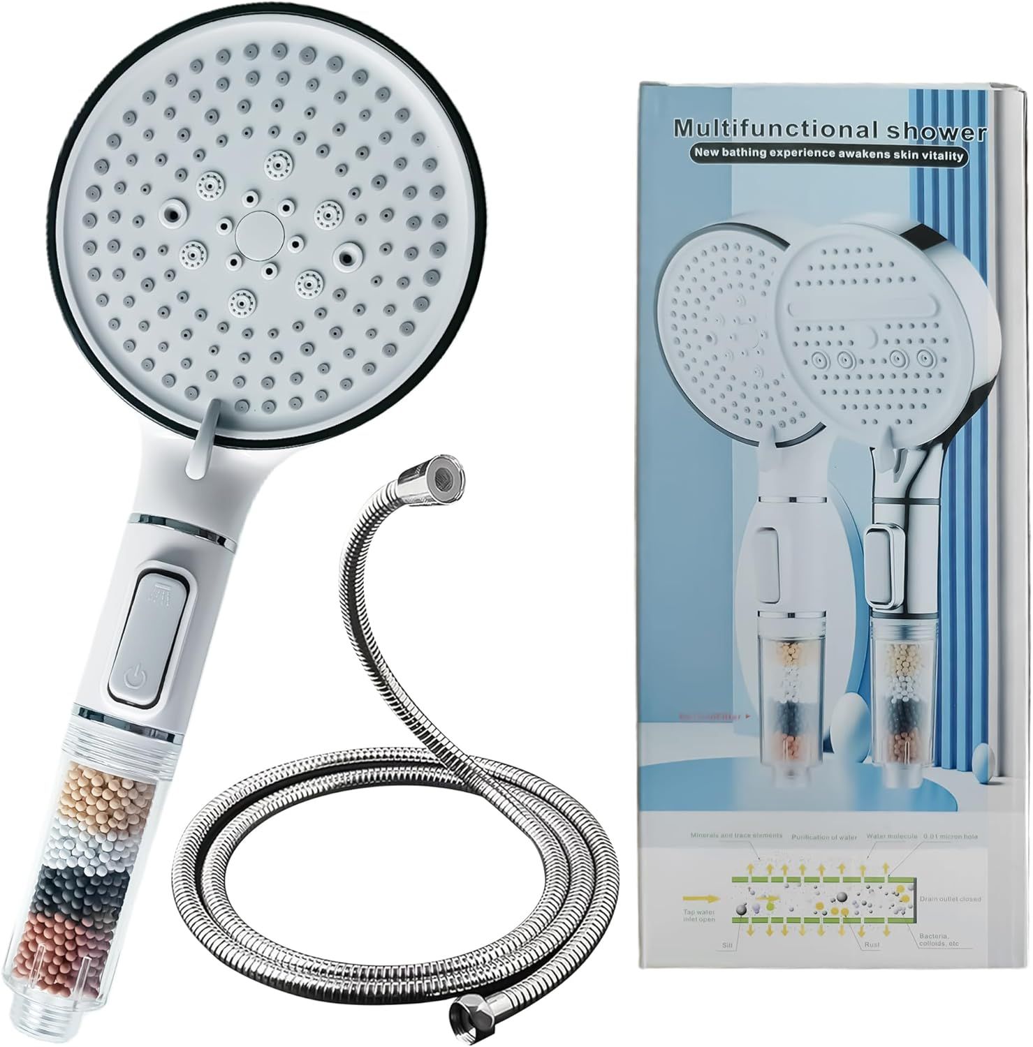 Pommeau de Douche Economie D'eau, Anti Calcaire Douchette avec Filtre, Haute Pression Pomme avec 3 Modes de Jet, SPA Pomme de Douche