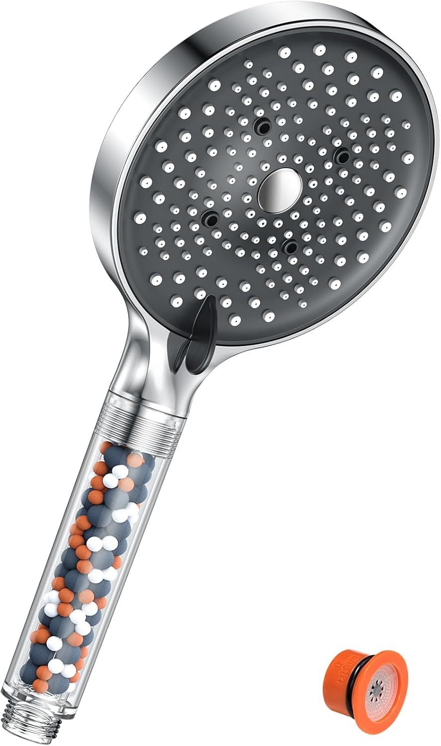 Pommeau de Douche Haute Pression avec 5 Types de Jets, Pommeau de Douche Anti Calcaire Pommeau Douche Economie Deau avec ACF Filtrant, Douche Belle Peau Douchette Douche Salle de Bain
