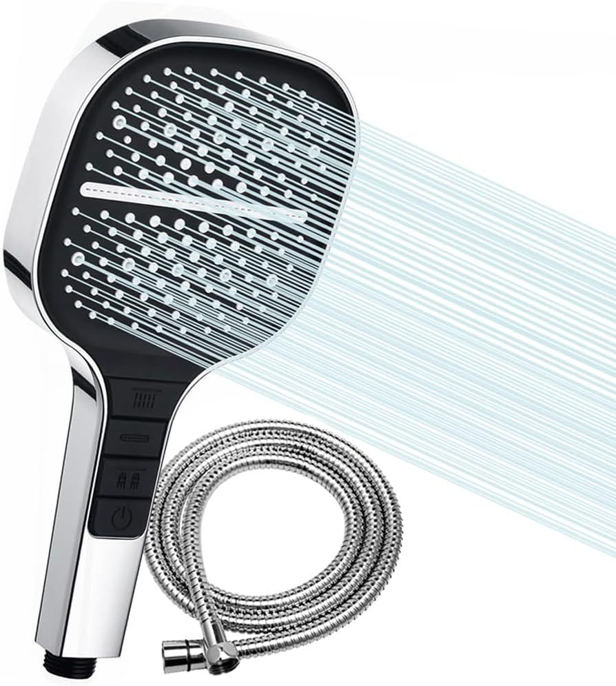 TZF-Pommeau de Douche Grand,Carré Pommeau Douche Haute Pression,douchette à Main,Pomme de Douche Anti Calcaire,Pommeau de douche economie deau,Douchette Douche Salle de Bain 7 Modes,Chromés HS001