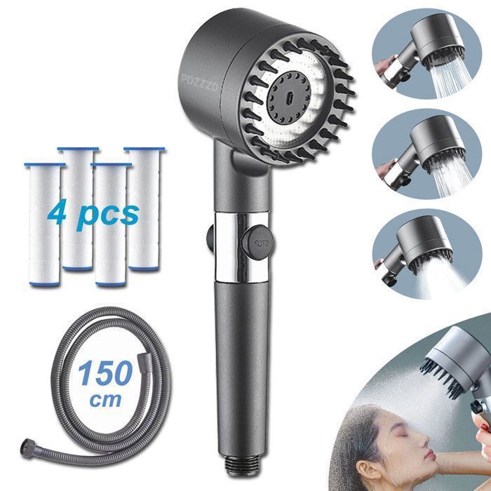 Pommeau de douche avec 4 Filtre Tuyau de douche 150 cm - Haute Pression Douchette Économique douche salle de bain Anti Calcaire