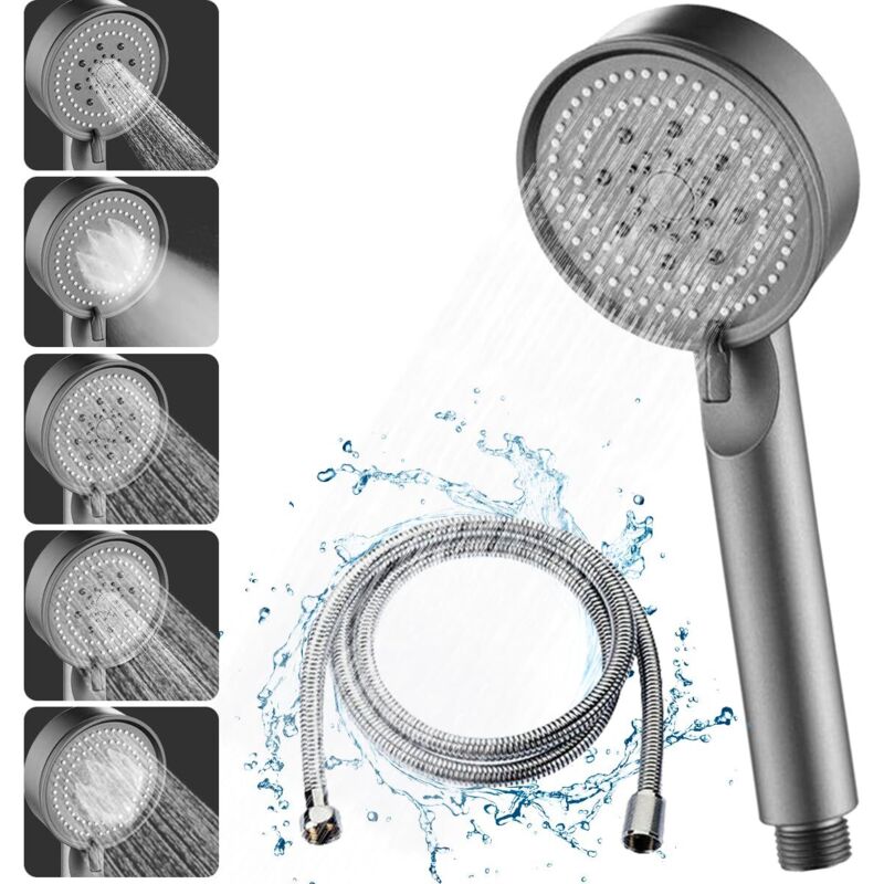 Pomme De Douche économe En Eau, 5 Modes économique Pomme De Douche, Tuyau De 2 M Pour Pommeau De Douche Avec Garniture D'arrêt D'eau, Pommeau De
