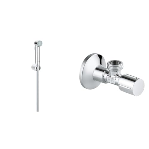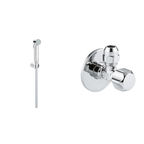 GROHE Vitalio Trigger Spray 30 Ensemble Pommeau de Douche, Chromé, 26175001 & Robinet d'Arrêt 1/2 Pouces 22046000, Argent