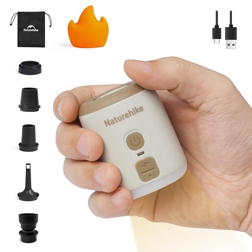 Naturehike Wind-Mini 1600 mAh Pompe à air à Batterie Rechargeable USB-C Mini Pompe à air de Camping Pompe à air électrique portative éclairée Pompe à air sur Coussin d'air avec 6 Buses d'air