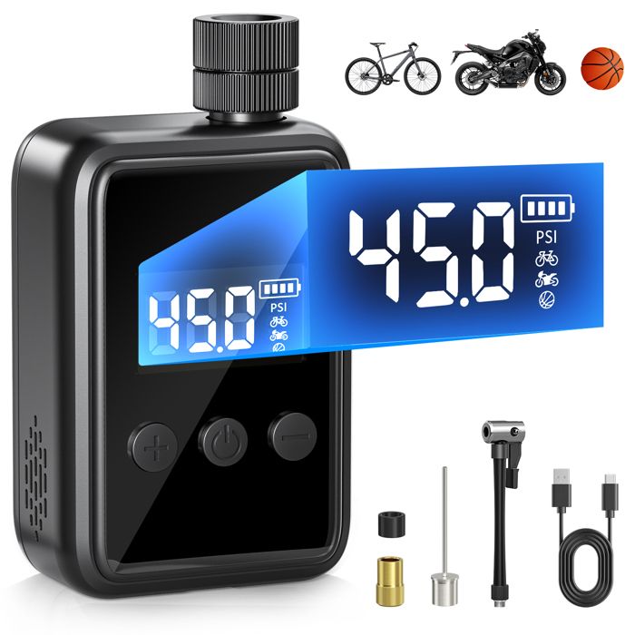 Pompe à Vélo Mini Pompe a Velo Electrique Portable Pompe Vélo Adapté pour Schrader et Presta 150PSI Pompe a Velo avec Batterie