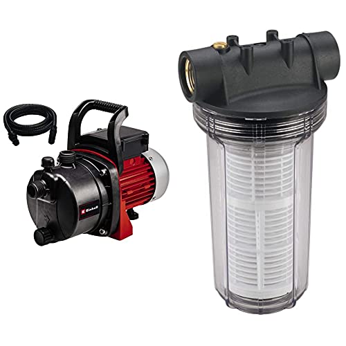 Einhell Kit Pompe d’arrosage de surface GC-GP 6538 Set (650 W, Hauteur de refoulement 36 m) & Filtre Anti-sable 25 cm pour pompe à eau, avec cartouche (filetage laiton, 2 raccords de connexion R1)