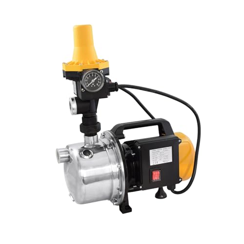 VONROC Pompe à Eau d'Arrosage 1000W, 3500l/h - 4,4 bar, Puissance Aspiration 8m - Hauteur max. 44m - Pompe à Eau Électrique Boîtier Acier Inoxydable - Pompe de Jardin, Raccord pour 2 ou 4 Arroseurs