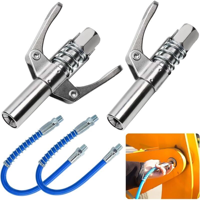 2 Pièces Coupleur Pompe a Graisse, Coupleur Embout Pompe à Graisse avec Tuyau de 30cm, Convient à Tous Les Types de Pistolets à Graisse (Double
