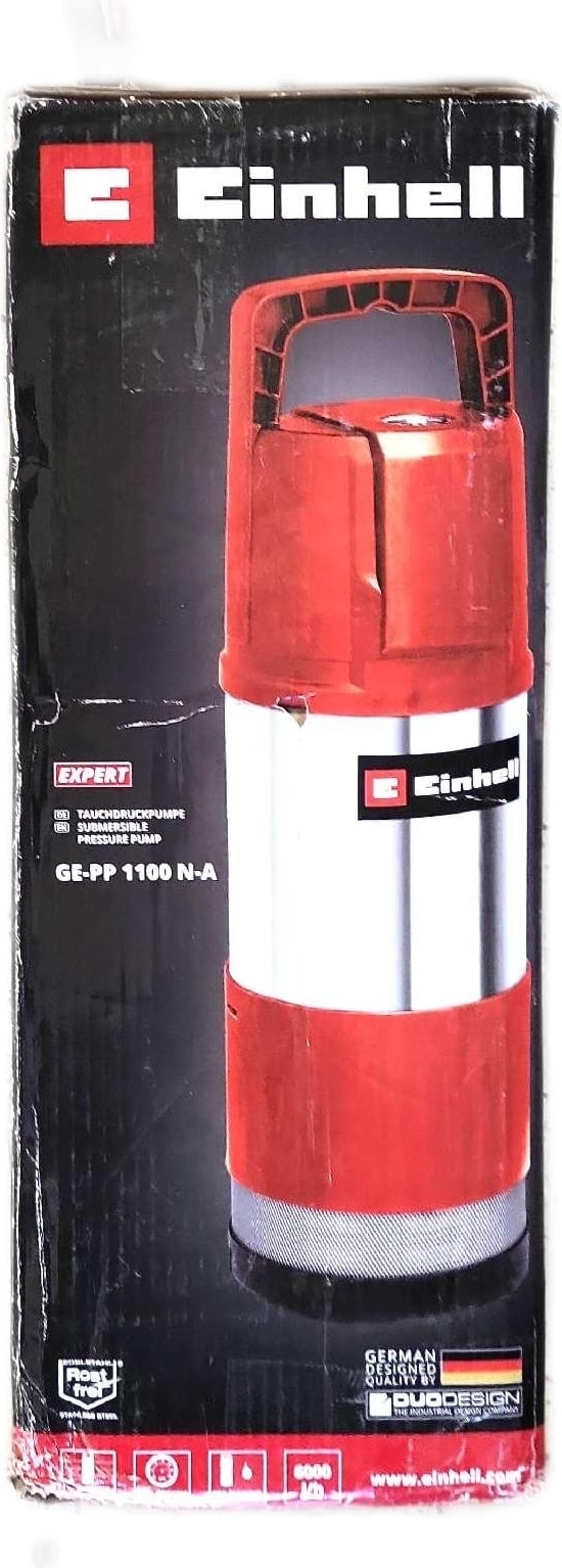 Einhell Pompe à pression immergée GE-PP 1100 N-A, puissance 1100 watts, débit max. 6000 l/h, hauteur de refoulement max. 45 m, fonction automatique, corps de pompe en acier inoxydable, 4171430