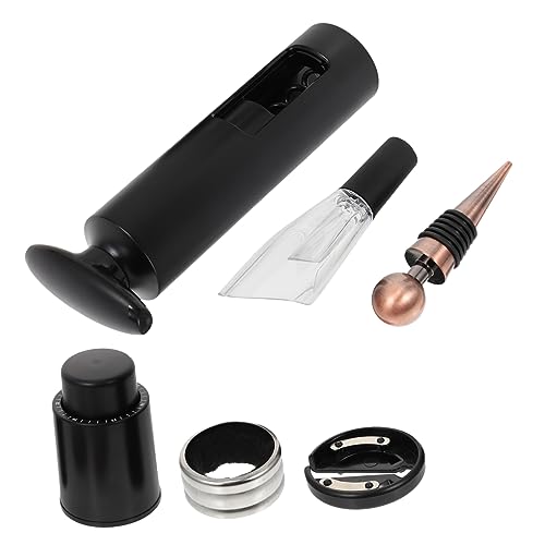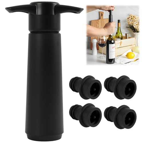 Linkidea Kit économiseur de vin sous vide avec 4 bouchons réutilisables, pompe à air manuelle pour champagne/vin rouge (noir)