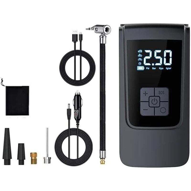 Pneu Compresseur d'air avec lumière LED pour pneus Voiture, Accessoires Voiture Portable Multifonction Pompe à air pour Voiture, Voiture, vélo,