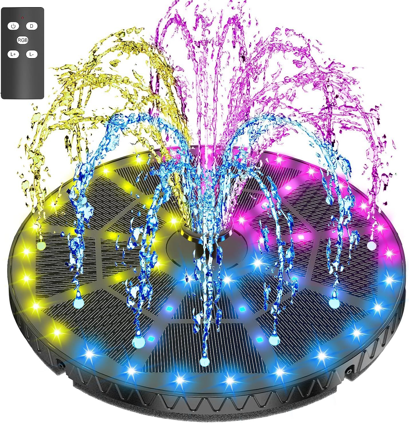 Mevronisshop-Fontaine Solaire 6w Avec Télécommande, 54 Leds Lumières Colorées Et 4000mah Batterie, Solaire Flottant Extérieur Fontaine Pompe Bassin Solaire Avec 8 Buses Pour Bain D'oiseaux, Étang, Pa
