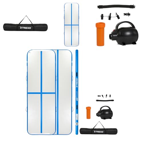 TREXO - Tapis De Gymnastique Gonflable Air Track 400×10 cm - Surface PVC, Pompe Et Valve Incluses, Base Antidérapante, Pression Réglable, Liaison Scratch - Blanc