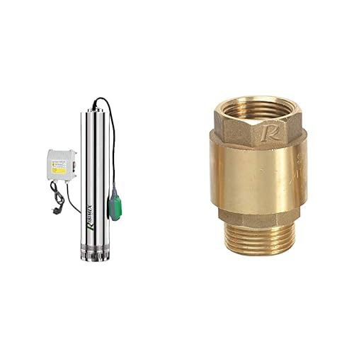 Ribiland 07366 - Pompe de Puits Profond - 750 Watts - En Inox - Débit Maxi 7800 l/h - Profondeur d'immersion Max 15 m & 02214 - Clapet Anti-Retour - En Laiton Or