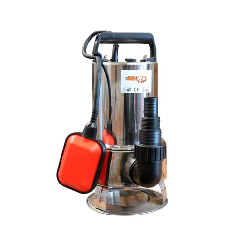 Bricoferr BFF1100D81A Pompe submersible pour eau sale avec moteur de 1100 W, débit 16,5 m³/h et élévation maximale de 10 m, argent