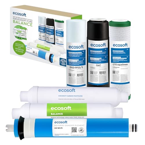 Ecosoft Filtre à osmose inverse – Set de recharges 5 étapes sans pompe avec alcalinisateur - Eau potable domestique équilibrée - Installation sous évier