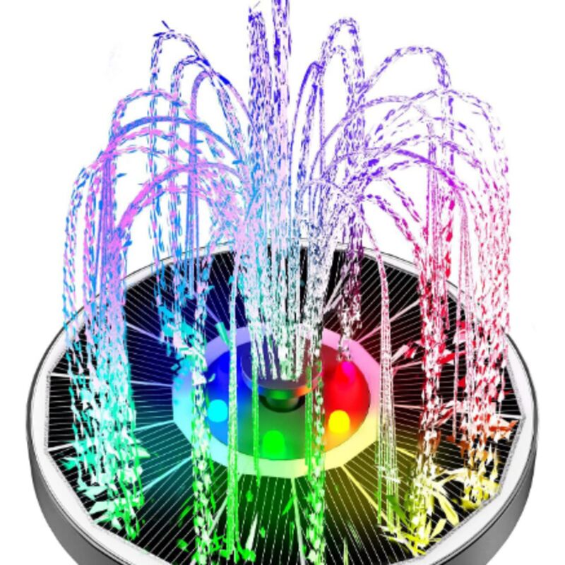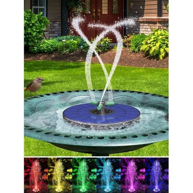 3.5W Fontaine Solaire 7 LEDs Colorée, Solaire Flottant Extérieur Fontaine Pompe Bassin Solaire avec 6 Buses pour Bain d'oiseaux,Étang,Piscine,Jardin
