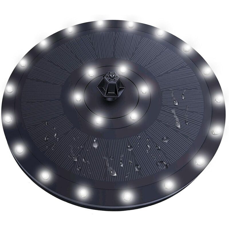 Pompe de fontaine solaire à LED - Jeux d'eau solaire et forme ronde - Pompe à eau solaire avec 7 buses pour bain d'oiseaux, jardin, étang, piscine,