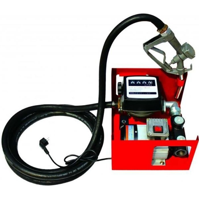 Pompe à Fuel Gasoil bio Autoaspirante – 230 v / 550 w / 60 l/min – avec Pistolet de distribution à arrêt automatique, Compteur numérique et tuyaux