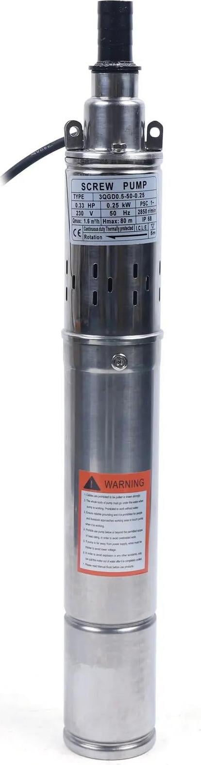 Pompe de puits profond - Pompe à vis immergée - 250 W - 7,6 cm - 220 V - fiche EU