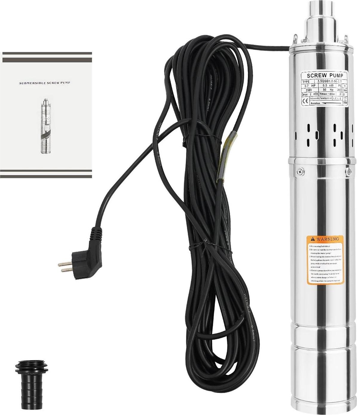 Pompe de puits profond, pompe à vis immergée 220V fiche EU, acier inoxydable, compatible avec le sable, pour le jardin et l'approvisionnement en eau