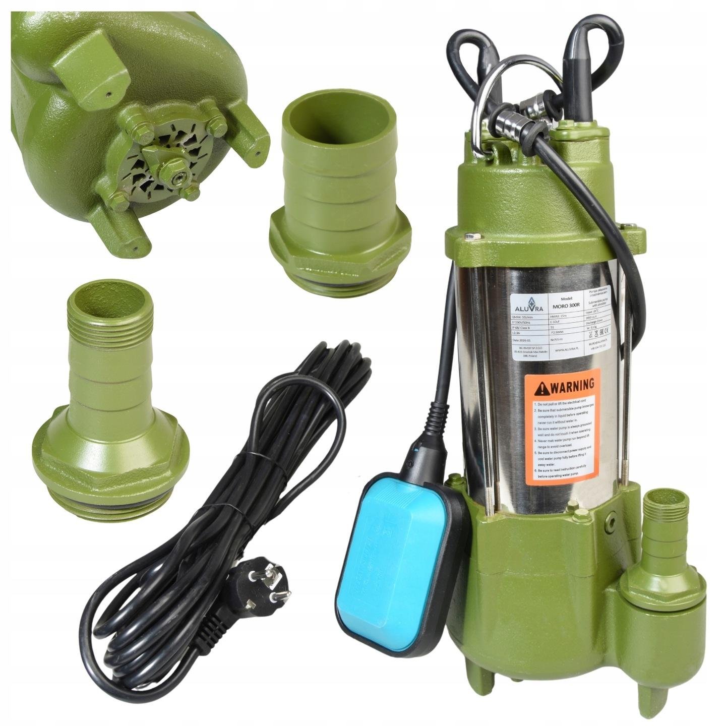 Pompe Immergée MORO 300R avec Broyeur 300 W, 3300 l/h, 15 m - pour Eaux Chargées et Eaux Usées - Pompe Vide-Cave pour Fosse Septique et Eaux